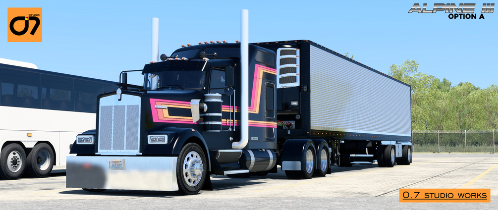 Embark on the ultimate trucking experience with the Alpine Skin Mod from O.7 Studio — a complete collection of premium paint schemes that blend timeless style with modern flair, crafted exclusively for the SCS Kenworth W900L.